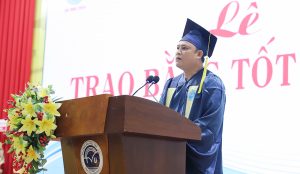 Tân thủ khoa thay mặt toàn thể sinh viên phát biểu